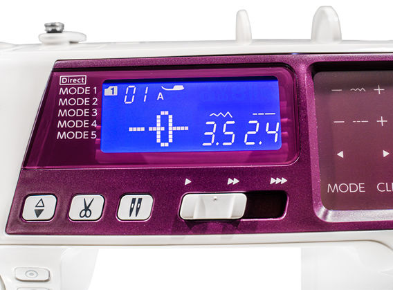 This machine has 80 stitches for many various sewing applications. Direct stitch selection is available for 20 stitches, and the other 60 stitches are pictured on the easy access slide-out stitch charts. When a stitch is selected, the LCD screen shows the selected stitch, recommended foot, default stitch width, and length, which you can change to suit your requirements. The Sewist 780DC also offers a choice of 3 styles of one-step buttonholes.