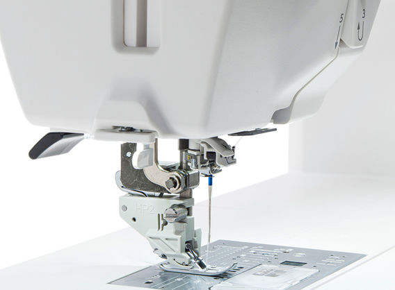 Hi-Definition Quilting is achieved with the Janome exclusive Detachable AcuFeed Flex Layered Fabric Feeding System as an optional accessory. Automatic presser foot lift, variable zig zag for free motion quilting, and includes a Ruler work foot.