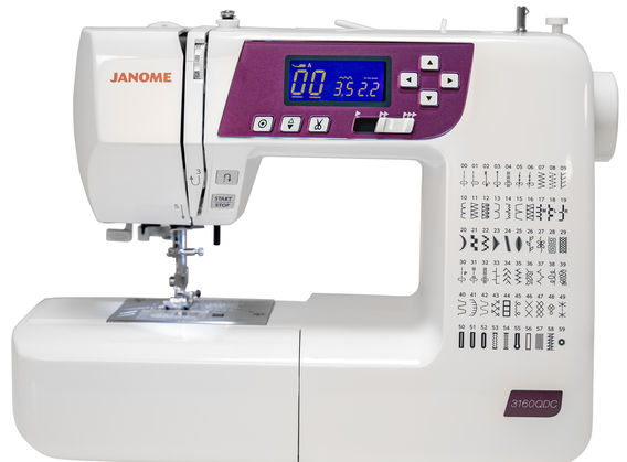 A full-featured machine made with a quilter's needs in mind, the 3160QDC-G will deliver all the benefits of a top-of-the-line model, and at an affordable price. You'll find 60 stitches including 6 one-step buttonholes. Janome's Exclusive Superior Plus Feed System offers specialized box feeding on top of Janome's SFS system, ensuring even, stable feeding with any fabric. And the time-saving features including memorized needle up/down, built-in needle threader, and lock stitch button make sewing easy. The Grapevine color featured on these machines is both trendy and timeless. Best of all, this full-size machine weighs only 12 pounds, so it is easy to take to classes and guild meetings!