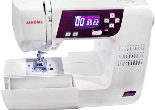 With sturdy construction and stable feeding, style follows substance in the well-equipped and intuitively designed Janome 2030DC-G. 30 stitches, locking stitch button, speed control slider, and a needle up/down function are just a few of the easy convenience features of this special machine. The Janome 2030DC-G has the power, precision, and convenience you need to realize your creative potential.